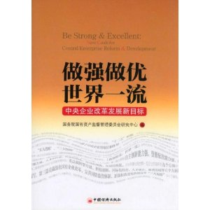 國(guó)務(wù)院國(guó)有資產(chǎn)監(jiān)督管理委員會(huì)研究中心緊密?chē)@國(guó)資委的中心工作,組織人員專(zhuān)門(mén)就中央企業(yè)改革發(fā)展的“一大目標(biāo)”,“五大戰(zhàn)略”,“三大保障”內(nèi)容進(jìn)一步細(xì)化和擴(kuò)展。出版《做強(qiáng)做優(yōu),世界一流:中央企業(yè)改革發(fā)展新目標(biāo)》,旨在對(duì)中央企業(yè)改革發(fā)展目標(biāo)和戰(zhàn)略部署進(jìn)行梳理和前瞻性的闡述,就培育一批具有國(guó)際競(jìng)爭(zhēng)力的世界一流企業(yè)應(yīng)具備的基本要素、實(shí)施戰(zhàn)略和創(chuàng)新探索等重要內(nèi)容提出了政策性、操作性和建設(shè)性的理論思考和改革設(shè)想。