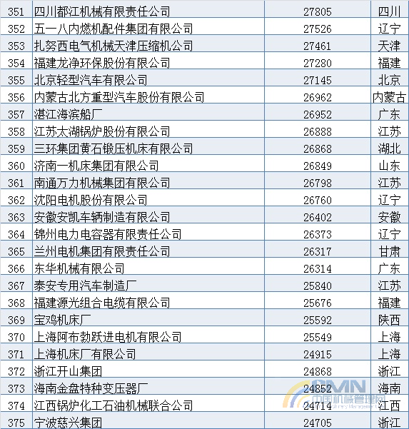 2003年中國(guó)機(jī)械500強(qiáng)排名