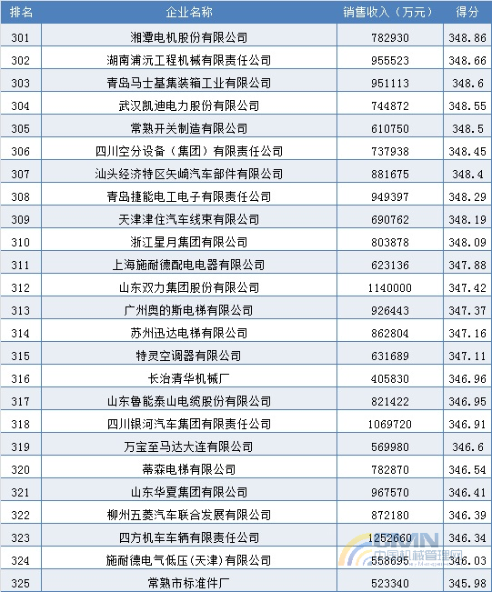 2004年中國(guó)機(jī)械500強(qiáng)排名(301-400)