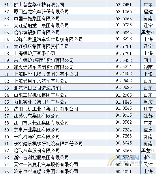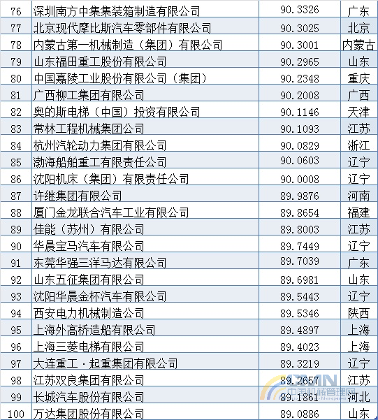 2006年中國(guó)機(jī)械500強(qiáng)排名(1-100)
