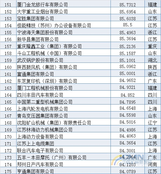 2006年中國(guó)機(jī)械500強(qiáng)排名(101-200)