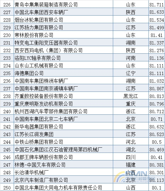 2007年中國(guó)機(jī)械500強(qiáng)排名(201-300)