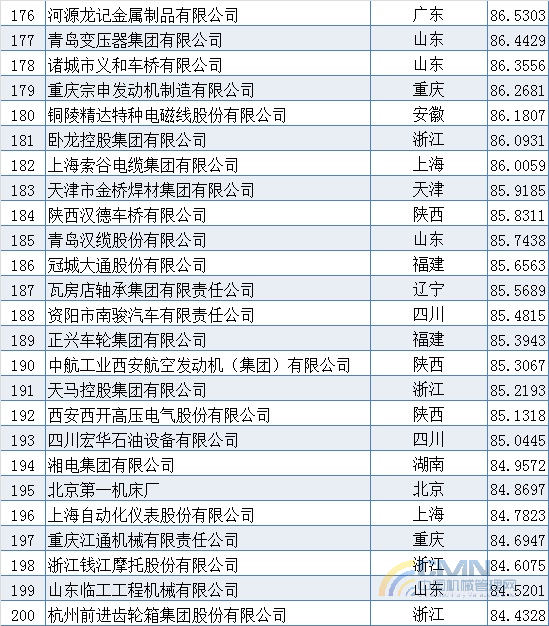 2009年中國機械500強排名(101-200)