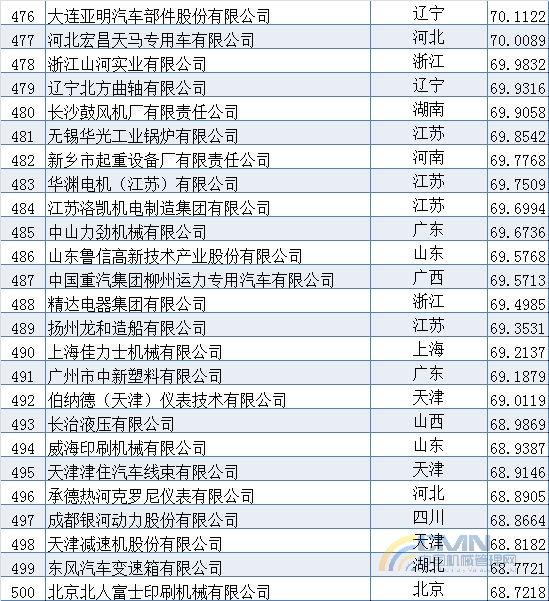 2009年中國(guó)機(jī)械500強(qiáng)排名(401-500)