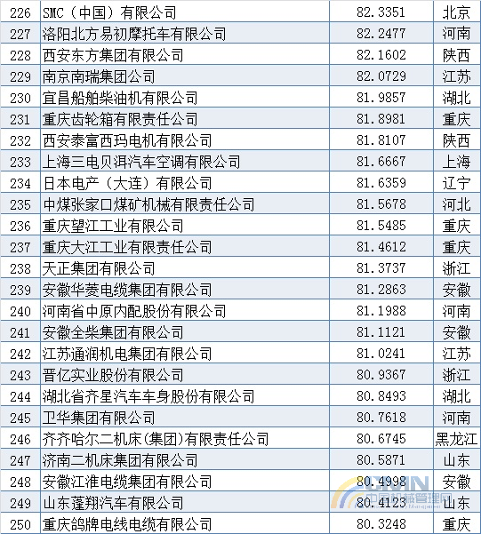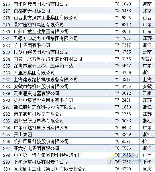 2010年中國機械500強排名(201-300)