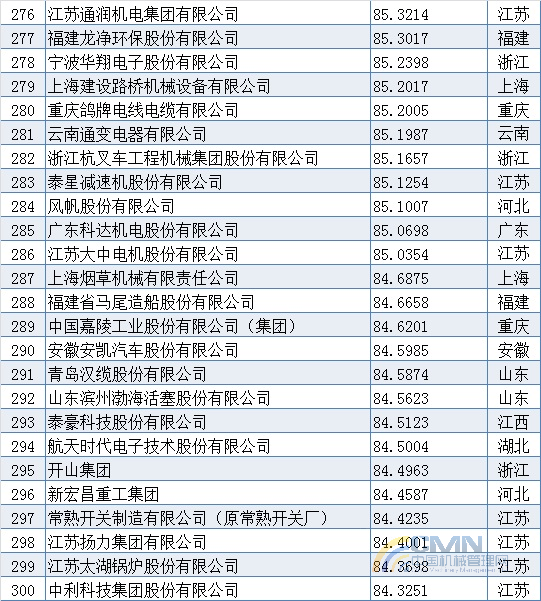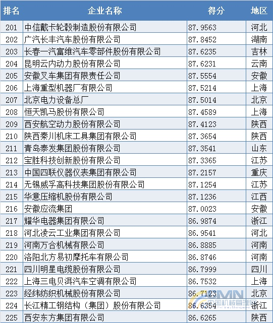 2011年中國(guó)機(jī)械500強(qiáng)排名(201-300)