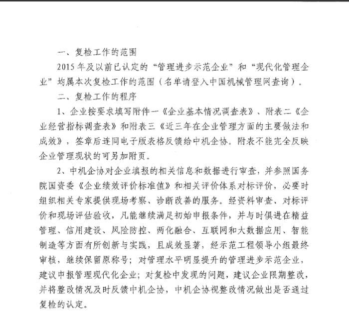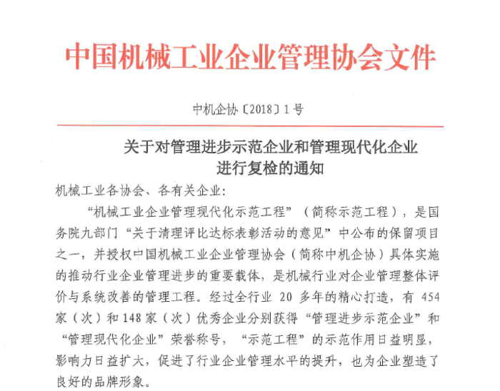 關于對管理進步示范企業(yè)和現(xiàn)代化管理企業(yè)進行復檢的通知