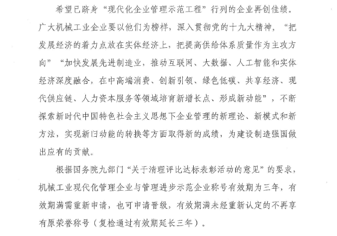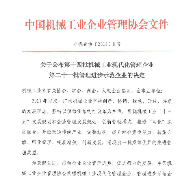 關(guān)于公布第十四批機(jī)械工業(yè)現(xiàn)代化管理企業(yè)、第二十一批管理進(jìn)步示范企業(yè)的決定-中機(jī)企協(xié)〔2018〕8號.pdf