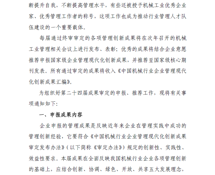關(guān)于組織申報(bào)2018年中國機(jī)械行業(yè)企業(yè)管理現(xiàn)代化創(chuàng)新成果審定的通知