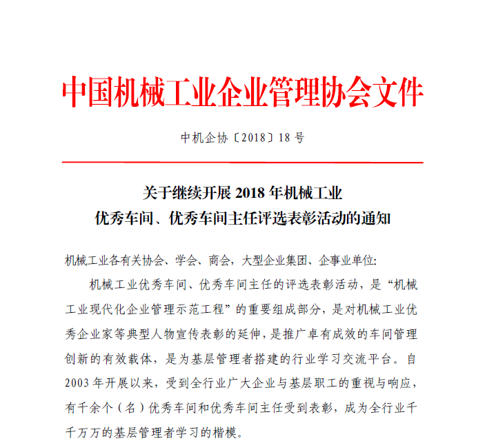 為表彰車間主任的優(yōu)異業(yè)績(jī),總結(jié)、宣傳企業(yè)基層管理工作的經(jīng)驗(yàn),為廣大車間主任創(chuàng)建一個(gè)相互學(xué)習(xí)、相互交流的平臺(tái),中國(guó)機(jī)械工業(yè)企業(yè)管理協(xié)會(huì)(以下簡(jiǎn)稱“中機(jī)企協(xié)”)根據(jù)《機(jī)械工業(yè)“十三五”企業(yè)管理發(fā)展規(guī)劃的建議》和《關(guān)于機(jī)械工業(yè)現(xiàn)代化管理示范工程實(shí)施意見(jiàn)》中,繼續(xù)組織開(kāi)展機(jī)械工業(yè)“優(yōu)秀車間”、“優(yōu)秀車間主任”表彰活動(dòng)的精神,特制定本實(shí)施細(xì)則。