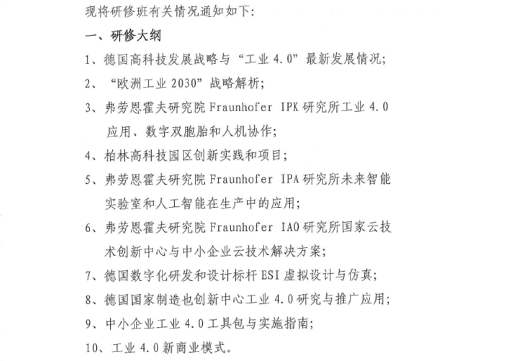 關(guān)于在德國舉辦"工業(yè)4.0"最新實踐與"歐洲工業(yè)2030"戰(zhàn)略高端研修班的通知