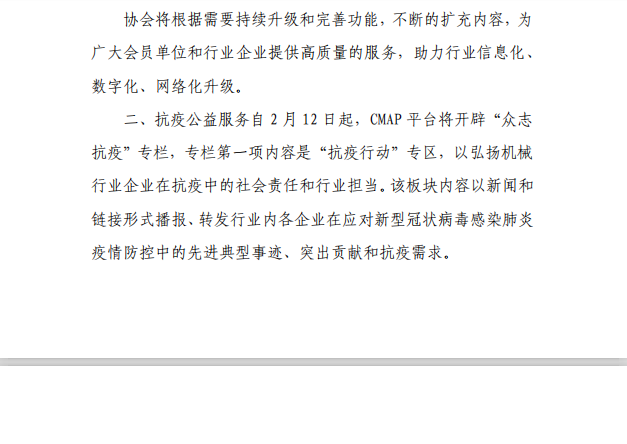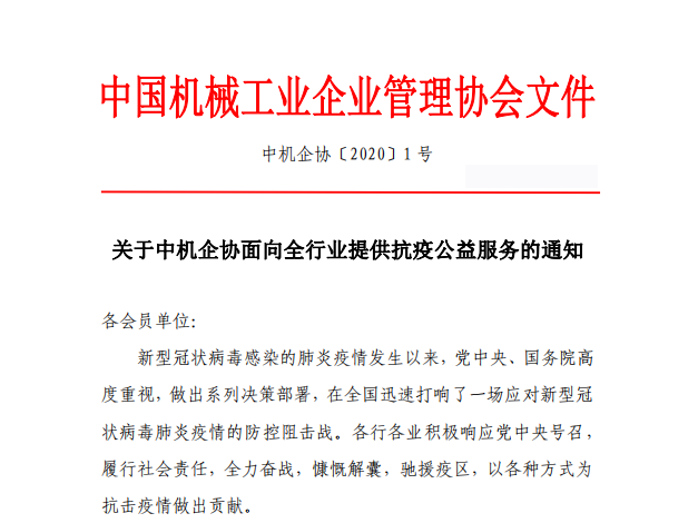 關(guān)于中機(jī)企協(xié)面向全行業(yè)提供抗疫公益服務(wù)的通知