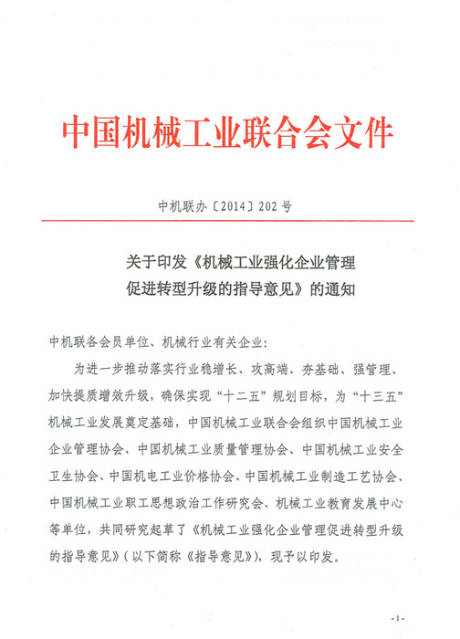 關(guān)于印發(fā)《機(jī)械工業(yè)強(qiáng)化企業(yè)管理促進(jìn)轉(zhuǎn)型升級(jí)的指導(dǎo)意見》的通知