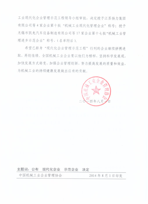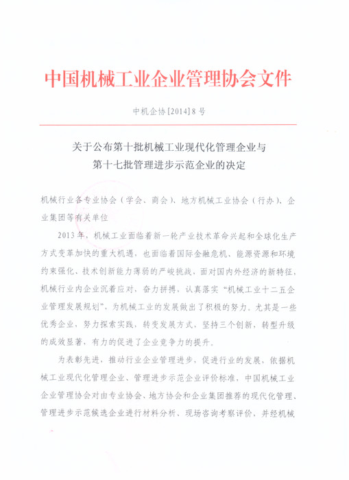 關(guān)于公布第十批機械工業(yè)現(xiàn)代化管理企業(yè)與第十七批管理進(jìn)步示范企業(yè)的決定