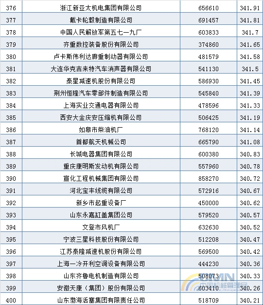 2004年中國(guó)機(jī)械500強(qiáng)排名(301-400)