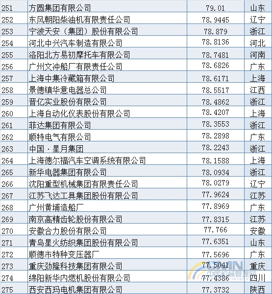 2005年中國(guó)機(jī)械500強(qiáng)排名(201-300)