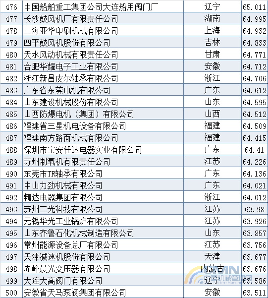 2007年中國機(jī)械500強(qiáng)排名(401-500)
