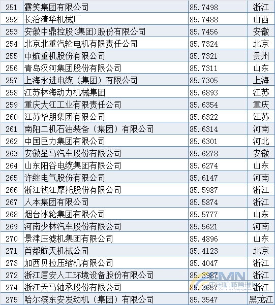 2011年中國(guó)機(jī)械500強(qiáng)排名(201-300)