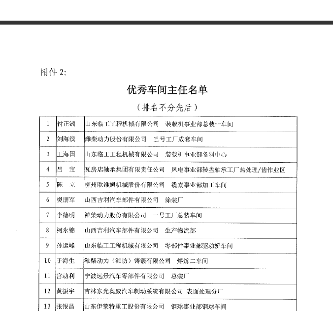 關(guān)于表彰2017年機(jī)械工業(yè)優(yōu)秀車間、優(yōu)秀車間主任的決定
