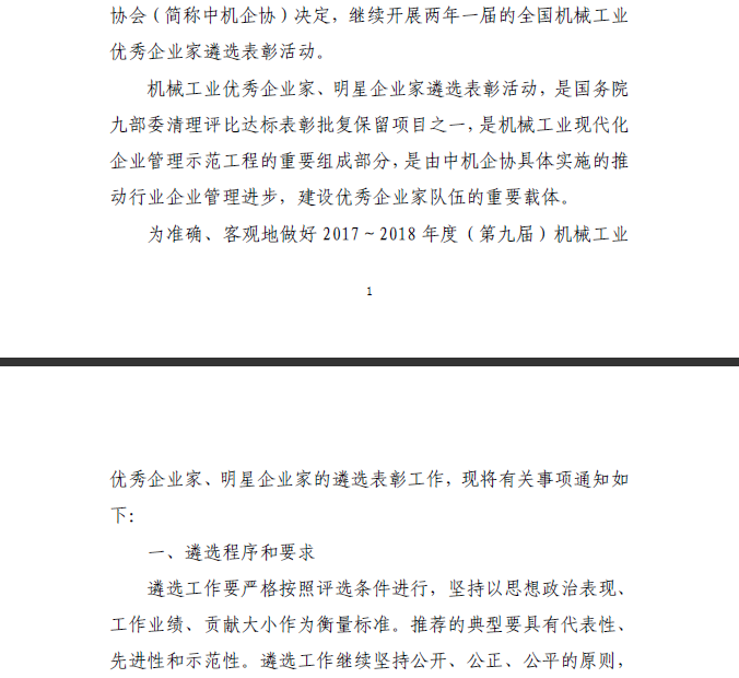 關于做好2017~2018年度機械工業(yè)優(yōu)秀企業(yè)家、明星企業(yè)家遴選表彰工作的通知