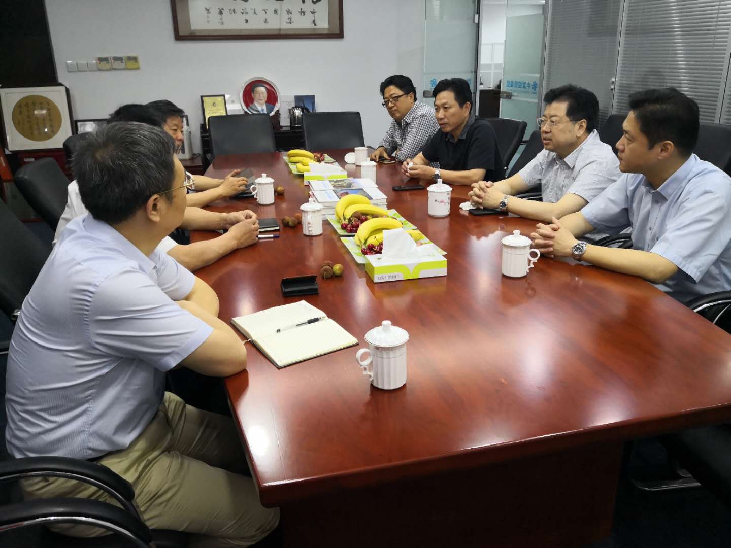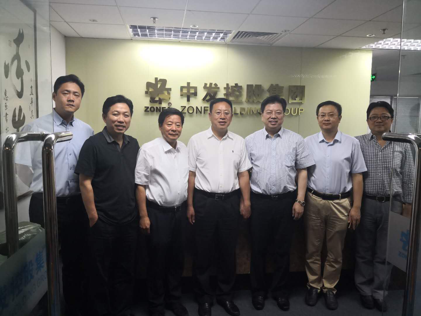 于中赤會(huì)長(zhǎng)(中)、楊一平常務(wù)副會(huì)長(zhǎng)(左三)、楊征秘書(shū)長(zhǎng)(右二)與陳鄧華董事長(zhǎng)(右三)等中發(fā)集團(tuán)領(lǐng)導(dǎo)合影