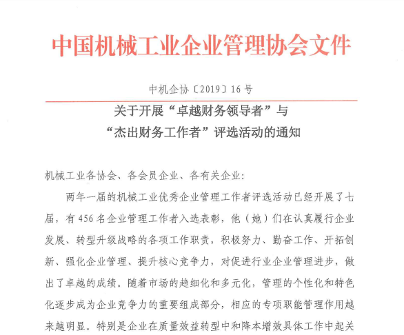 關(guān)于開展“卓越財務(wù)領(lǐng)導(dǎo)者”與“杰出財務(wù)工作者”評選活動的通知--中機企協(xié)[2019]16號.pdf