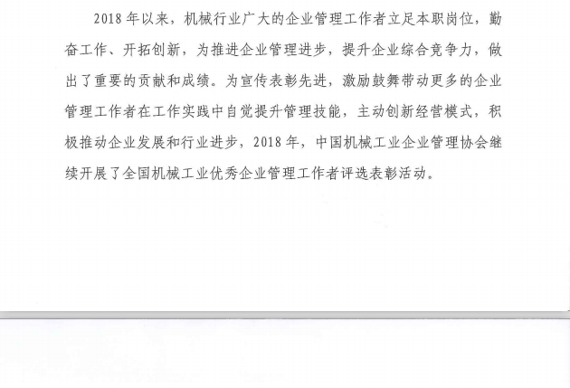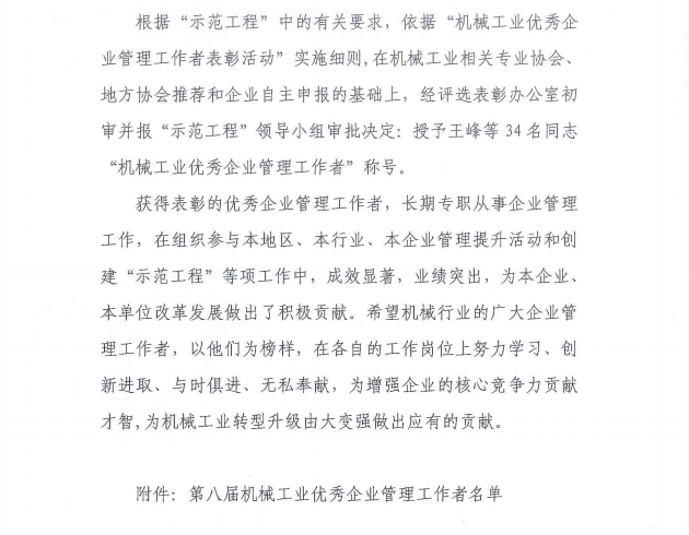 關于表彰第八屆機械工業(yè)優(yōu)秀企業(yè)管理工作者的決定