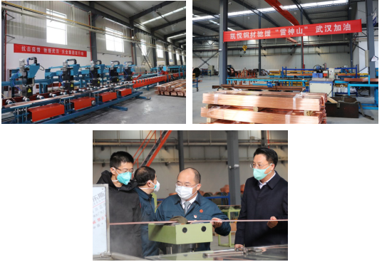 集團執(zhí)委會領導高度重視此次任務,每天都到生產(chǎn)現(xiàn)場,時刻關注項目進度、慰問一線員工。2月3日上午,大全集團總裁徐翔帶隊,執(zhí)行總裁葛飛、副總裁施大峰、副總裁蔡金洪、副總裁蔡斌、副總裁朱亞偉等領導到大全默勒、凱悅銅材生產(chǎn)車間指揮協(xié)調,強調一定要保質保量按時完成這項艱巨的任務。