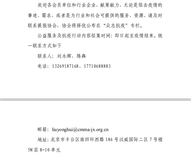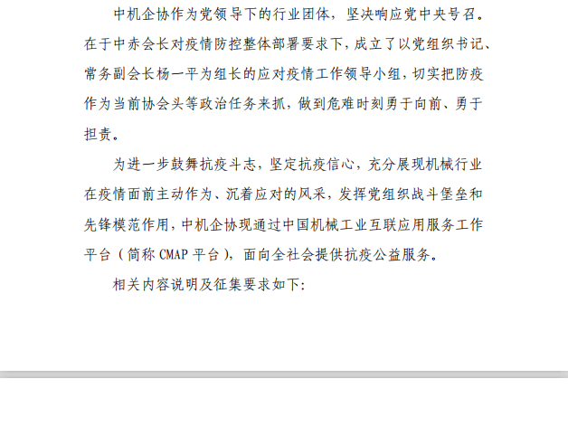 關(guān)于中機(jī)企協(xié)面向全行業(yè)提供抗疫公益服務(wù)的通知