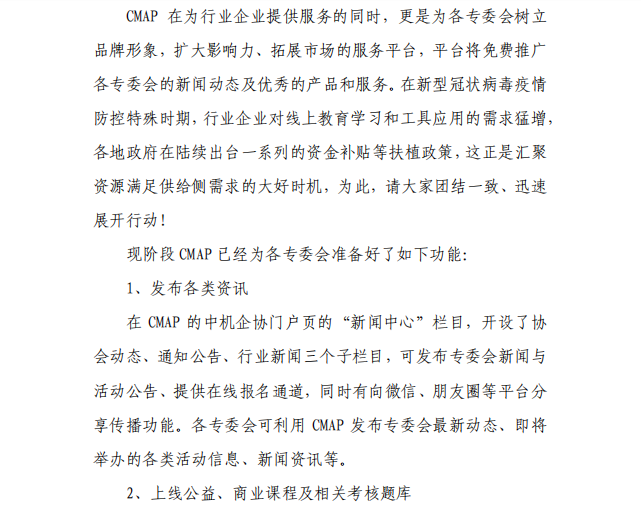 關(guān)于中機(jī)企協(xié)為各專委會(huì)開通使用 CMAP 的通知