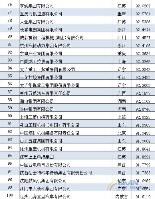 2012年中國機(jī)械500強(qiáng)排名(1-100)