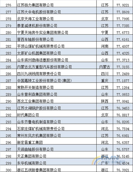 2012年中國機械500強排名(201-300)