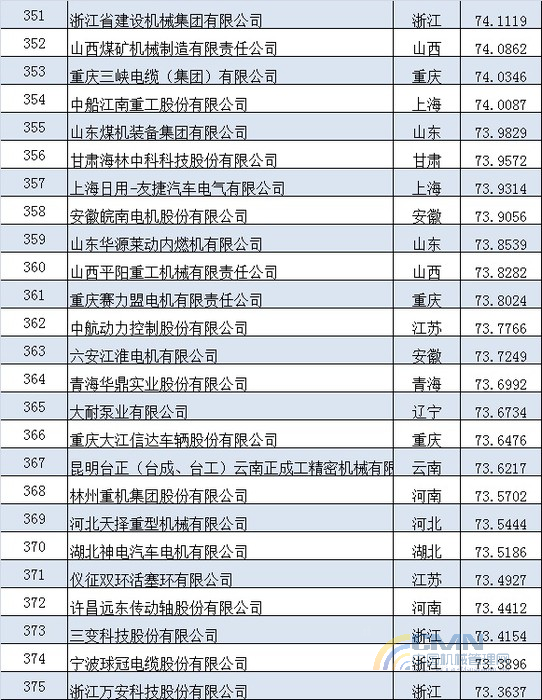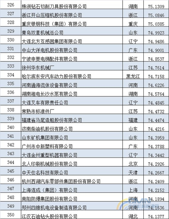 2012年中國機(jī)械500強(qiáng)排名(301-400)
